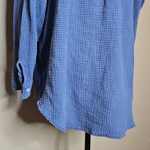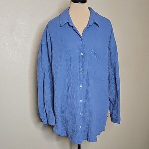 Aerie Gauze Blue Button Down Oversized Long Sleeve Shirt Large