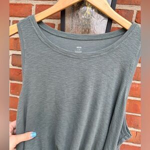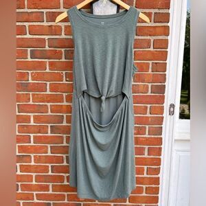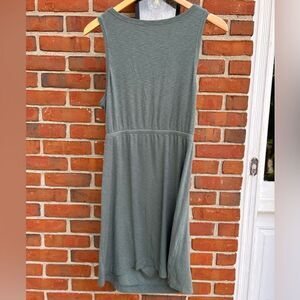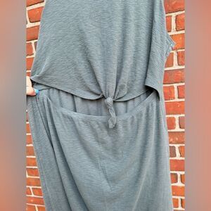 Underarm measurement is 21.5” across. Elastic Waist measures 16 1/4” across. Length is 35.5”.