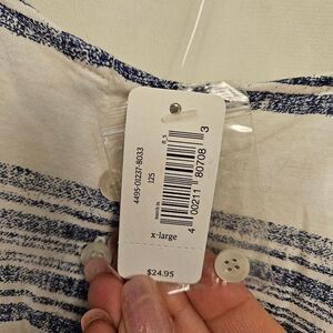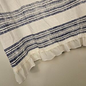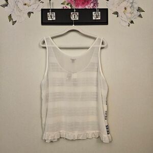 Striped henley style tank with ruffled hem and button front. Back is sheer.