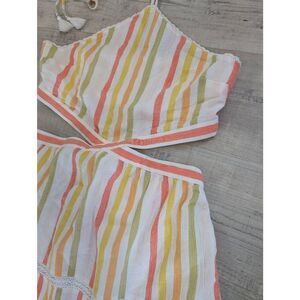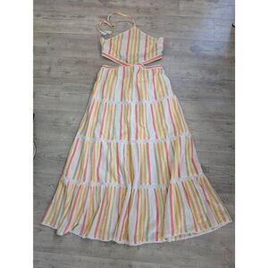 Aerie Striped Halter Maxi Dress Cutout Sides Smocked Back Tiered Summer Boho L