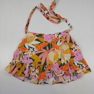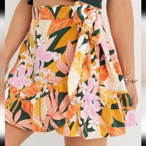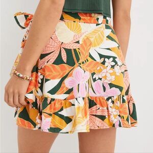 Aerie Women’s M Floral Linen Blend Wrap Mini Skirt Tropical Ruffle Hem Tie Waist
