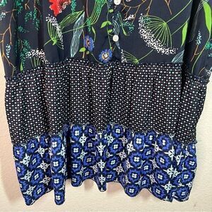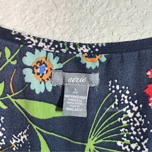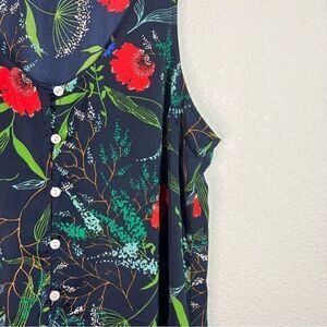Aerie Women's Navy Floral Button Front Sleeveless Shift Dress Large V-Neck