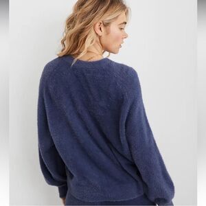 Aerie flurry fuzzy crewneck sweater indigo