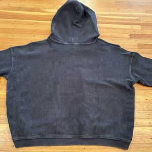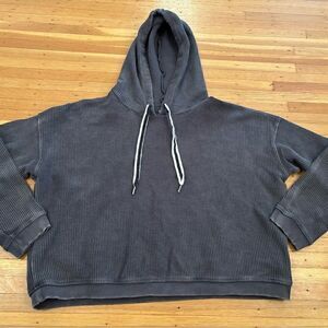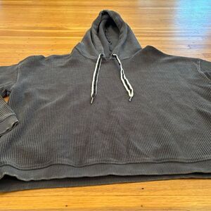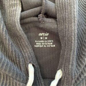Aerie grey ribbed crop hoodie. Hooded with drawstrings. 100% cotton. Armpit to armpit 25 inches. Length 20 inches. Size medium. Great condition!