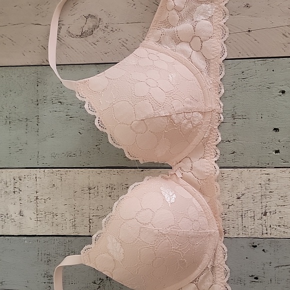 size 34D Light peach in color flower lace pattern padded under wire bra from Aeries. looks like new, no signs of wear