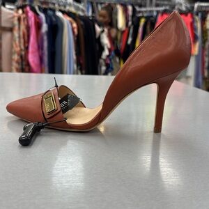 Aerin Tan Pointed Toe Heels with Gold Buckle