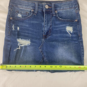 Aero Denim Mini Skirt Womens 0 Blue Jean High Rise Pockets Distressed