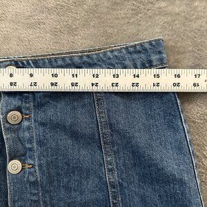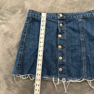 Aero High Rise Denim Button Front Mini Skirt Women's size 8 Raw Hem