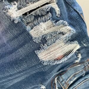 Aero Jean Short Light Blue Wash Distressed Torn Holes Denim Inseam 3 Cuffed Sz 2