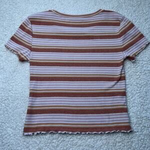 Aero The OG Tee Collection Orange Stripe Shrunken Tee Medium. Preowned and in great condition. Top has orange and pink stripes with crew neck front. Approx measurements are in photos.