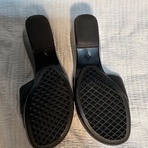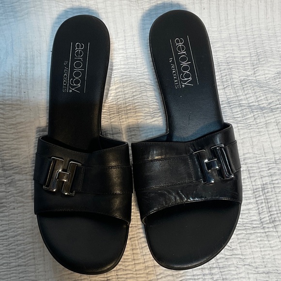 Aerology by Aerosols Black Wedge Slides with Glossy Finish