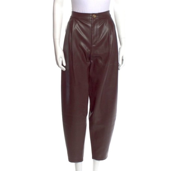 AERON barrel leg high rise faux leather pants in an awesome deep reddish brown color (sort of burgundy but a bit more brown).