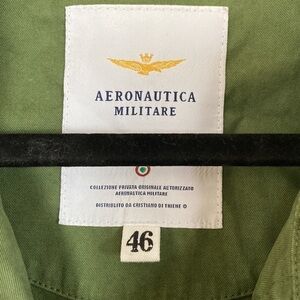 This is a super amazing aeronautica military jacket that was made in Italy. Very heavy duty cotton with a canvas feel. Lots of buttons and different pockets. I would say a 46 in Italian is equivalent to a medium large and women’s. I am a size 10 and it fits me a little tight. Pit to pit zipped is 20.5” and length from top to bottom is 27 inches And sleeve length from top of shoulder at seam to bottom is 27 inches. Look like you were made for Top Gun in this one!