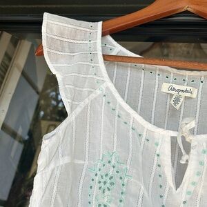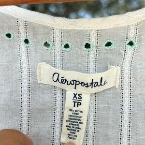 Aeropostale 100% Cotton Top, super soft and cute, elastic bottom, teal embroidery on front and around top hem. Girly!