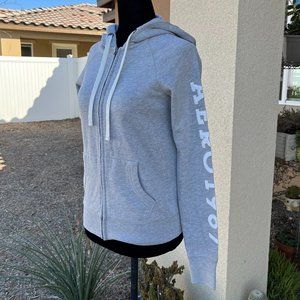 Aeropostale 1987 Light Heather Grey Hoodie Sweatshirt Full Zip Women Size XSmall