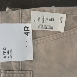 NWT Aeropostale Skinny Stretch Khaki Uniform Pants with 2 Side Front Pockets and 2 Faux Back Pockets. Price is for 2 Pair.
