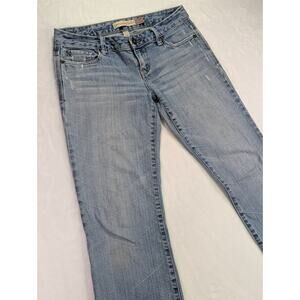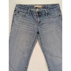 Aeropostale 3/4 Reg Chelsea Bootcut Distressed Low Rise Med Wash Embroidered Y2K