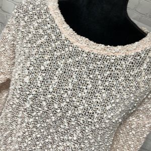 This is so sweet and adorable can be worn so many ways. Pale apricot semi sheet with pale hood threading. Hi-low tunic style relaxed fit has Ben worn and washed but in EUC