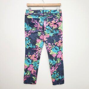 These Aeropostale Ashley Ultra Skinny Jeans in Size 9/10 feature a low rise design with a stretch denim fabric for added comfort and flexibility. The jeans are adorned with a colorful flower print, making them a stylish choice for any season. The 5-pocket design and zip/button closure add functionality to these extra-slim fitting jeans, perfect for a trendy and fashionable look. Made from a cotton blend material, these jeans are machine washable for easy care and maintenance.