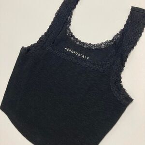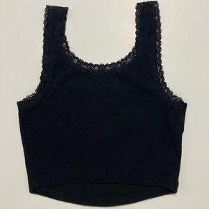 Aeropostale Black Lace Trim Ribbed Tank Crop Top Women's Small