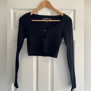 Aeropostale Black Ribbed Long Sleeve Crop Top Size M