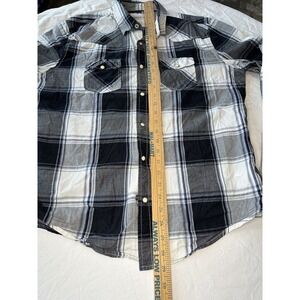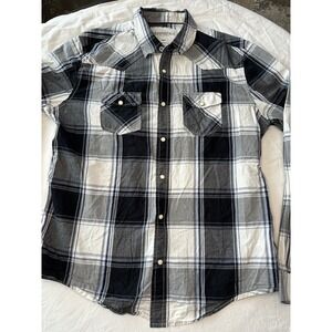 Aeropostale Black/White/Grey Medium Western Plaid Shirt Pearl Snap Long Sleeve