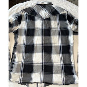 Aeropostale Black/White/Grey Medium Western Plaid Shirt Pearl Snap(Button Down) Long Sleeve