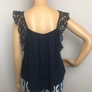 Aeropostale Blouse | Crocheted Bodice | Lace Flutter Cap Sleeves | Navy Blue