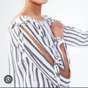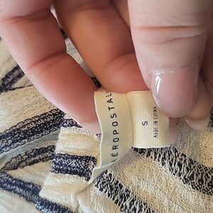 Aeropostale Blue And White Tie Sleeve Top Size Small