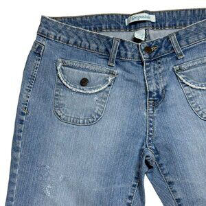These Aeropostale capri jeans embody casual elegance with their relaxed cut and timeless denim appeal. Crafted from breathable cotton and a hint of lycra for stretch, they provide comfort and ease of movement. The subtle distressed details and classic button closure exude a laid-back charm, making them a versatile wardrobe staple.