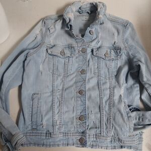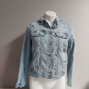 Aeropostale Blue Denim Vintage Jacket Distressed Jean Size S Front Pockets Y2K