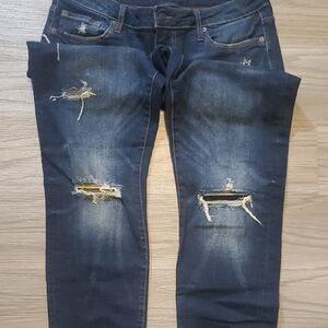 Aeropostale Blue Distressed Skinny Jeans with Stretch 34x32