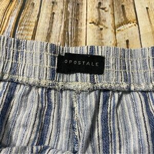 Aeropostale Blue White Striped Tassel Linen Blend Shorts