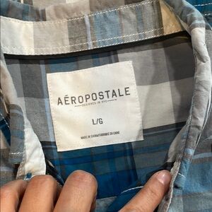 Aeropostale Blue and Gray Casual Button Down Shirt