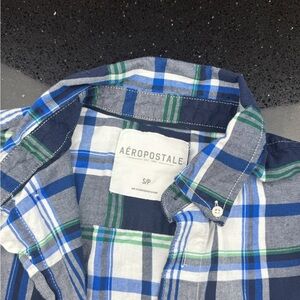 Aeropostale Blue and Green Casual Button-Down Shirt