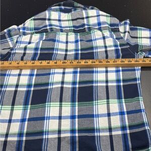 This Aeropostale shirt features a vibrant blend of blue and green in a classic plaid pattern, perfect for a relaxed, casual look. Made from lightweight fabric, it offers comfort and style for everyday wear. The shirt's design includes a traditional collar and a relaxed fit, making it an ideal choice for casual outings.