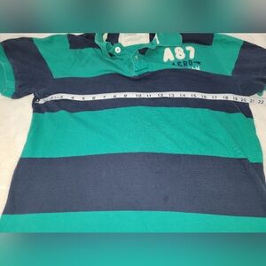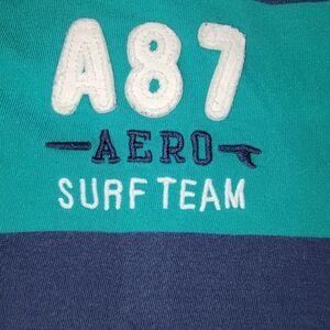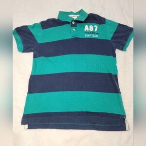 Aeropostale Blue and Green Polo Shirt with Sporty Stripes