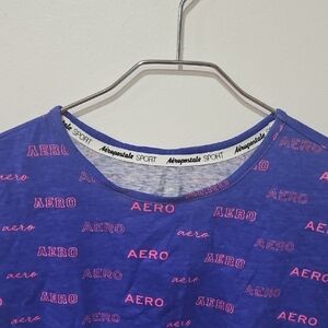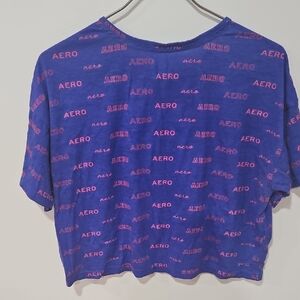 Aeropostale Blue and Purple Short Sleeve Graphic Crop Tee