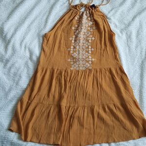 Aeropostale Boho Geometric Lightweight Embroidered Tiered Mustard Halter…