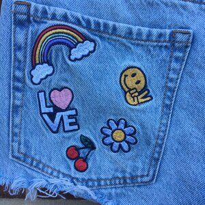 Aeropostale Boyfriend Denim Jean Shorts Size 2 Hippie Rainbow Patches Festival Distressed