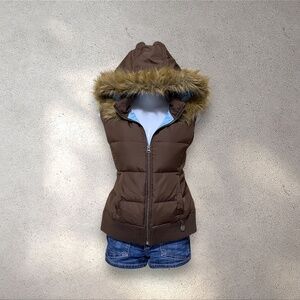 #aeropostale #puffervest #furhood #y2kstyle #brownvest #layeringpiece