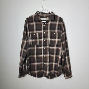 Aeropostale Brown Long Sleeve Relaxed Vintage Wash Plaid Flannel Shirt Size Medium
