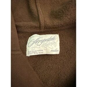 brown hoodie, medium hoodie, pullover sweater, casual hoodie, cotton blend hoodie, medium size hoodie, brown pullover, aeropostale clothing, warm hoodie, ribbed hem hoodie, aeropostale sweatshirt, embroidered logo hoodie, kangaroo pocket hoodie