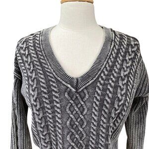 Aeropostale Cable Knit Grunge Crop Sweater Sz M Washed Out Mineral Washed Oversized