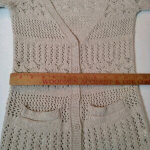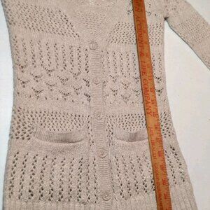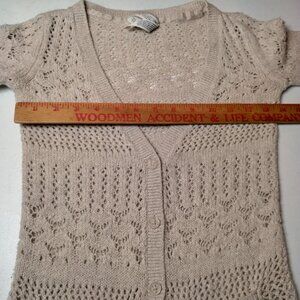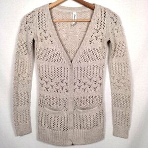 Aeropostale Cardigan Sweater Women XS Slim Fit Oatmeal Open Knit V Neck Y2K