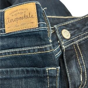 Inseam 27.5” Experience the perfect blend of style and comfort with these Aeropostale Blue Flare Wide Leg Jeans. Crafted from medium-weight denim with a slight stretch, they feature a flattering flare cut that adds a touch of elegance to any casual outfit. The medium-dark blue wash with natural fading and whiskering offers a chic, worn-in look.