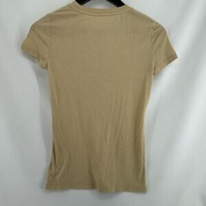 Aeropostale Classic Crew Embroidered Tee Womens Small Tan Pink Casual Fall Top