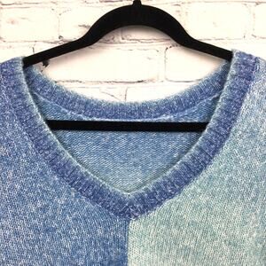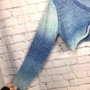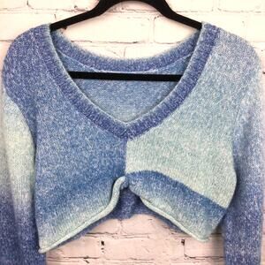 Aeropostale Ombre Color Block Y2K Front Twist Blue Knit Ribbed V-Neck Long Sleeve Festival Cropped Sweater Size Junior XL