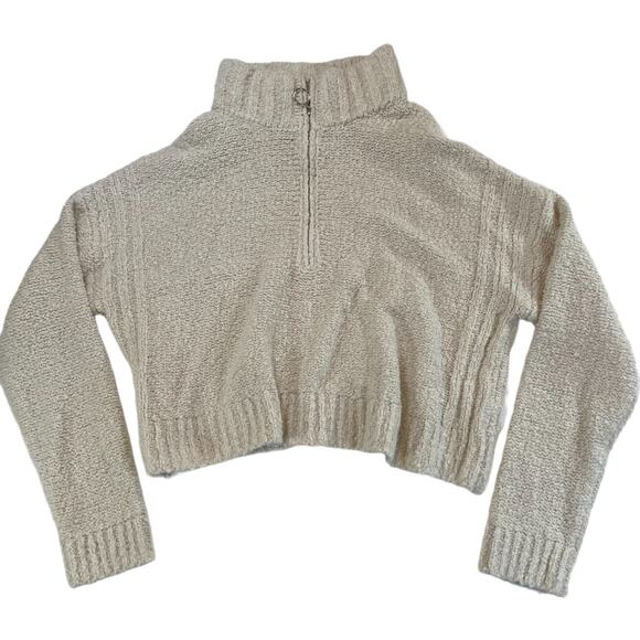 Aeropostale Cream Chenille Popcorn Knit Quarter Zip Cropped Sweater XL