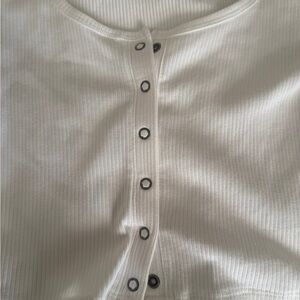 Aeropostale Cream Ribbed Button-Up Crop Top Size XS